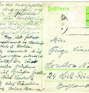 The inspection of the property for shipping at Zeide’s נ"י is tomorrow and it will be shipped off tomorrow. Hopefully the permit for the luggage will also arrive on time so that they can travel איה"ש on Monday. This has now become much more difficult and usually takes three weeks. Papa נ"י is davening and I am in a rush. That’s why he doesn’t write. He sends best regards to all. I also greet everyone and kiss Auntie ת', Gusti ת', also Miss Judith ת'.