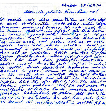 We are told that if we have the possibility of continuing our journey, we will all receive certificates. For the time being there is no talk of moving. In case you are able to speak with a certain Rosenblueth - he’s supposed to be a macher with emigrant certificates – אפשר he can do something about a certificate for us. Did you receive my Yiddish letter of mid-June? The last I received from you was of 3 June.