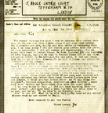 You cannot imagine how glad I was to receive this letter from you. It is now more than a year since I got your last letter. But I vorgive you now, hoping you will write me regularly from now. I am very sorry I did not receive your letter with the photo of your wedding. I did not answer you immediately, for we moved this week to Kwuzat Jawne. We have finished yet our learning at Kfar Hanoar, and now we went to Kwuzat Jawne (it is the first religious kibbuz in Palestine), for one year to see and learn the life in the kibbuz. Afterwards we will continue and establish ourselfes on own ground.
